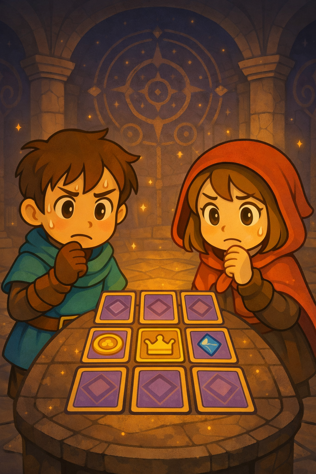 散りばめられた王国の象徴を記憶し、正しい組み合わせを見極めよ。